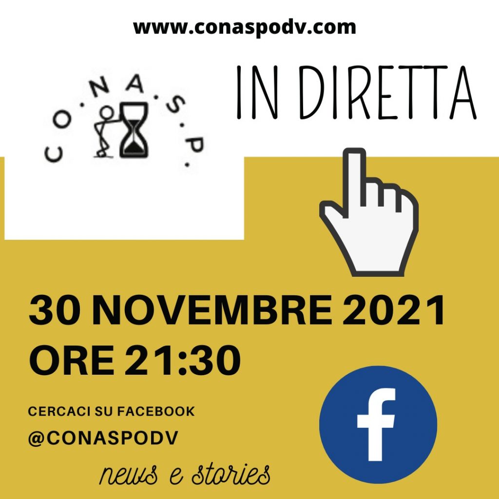 Il 30 Novembre 2021 alle 21:30 il Conasp Odv annuncia una nuova diretta, a cui si potrà partecipare accendendo alla nostra pagina Facebook @ConaspOdv